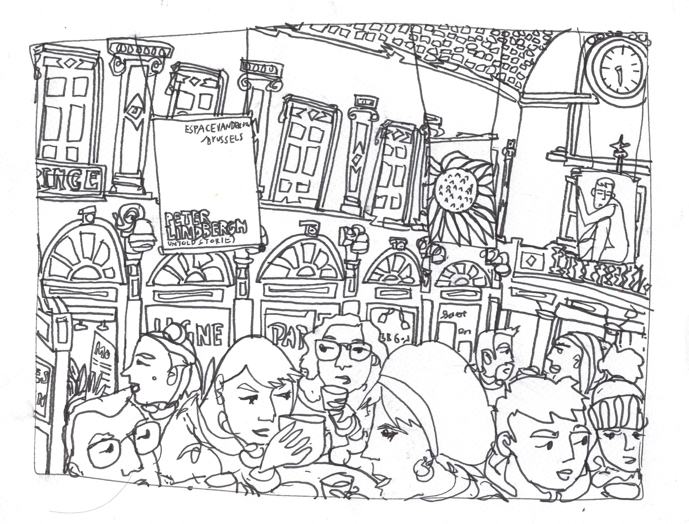 This pen & ink drawing is from a year or so again, in the winter in a Brussels arcade. A contour drawing that might get colored in sometime in the future.