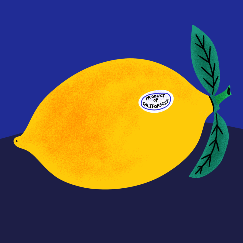 An iPad drawing on Procreate, a lemon, “Product of California”.