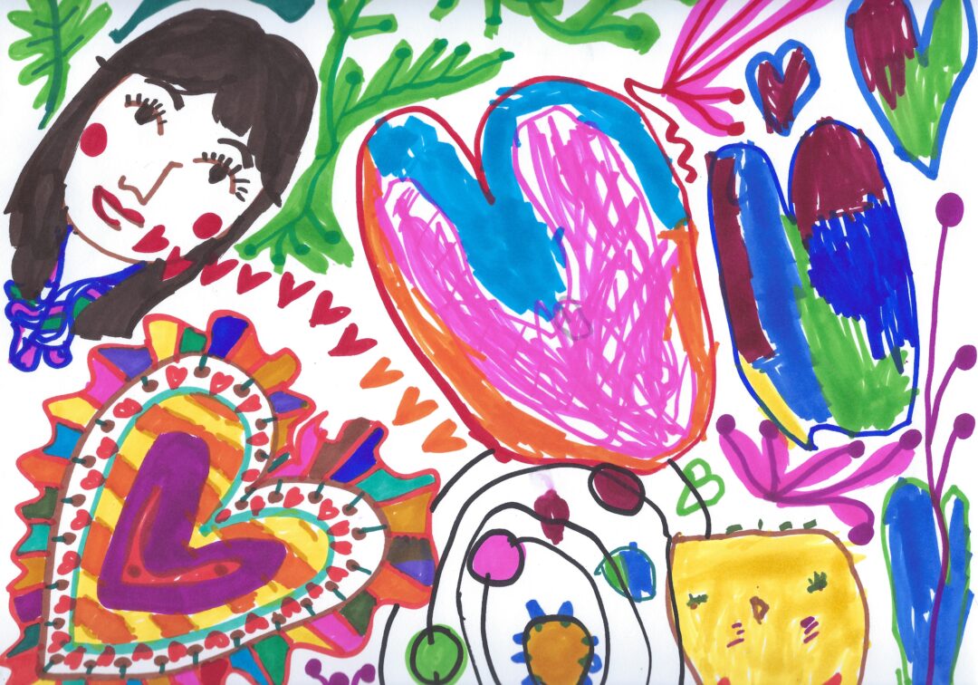 Girl with Hearts and Squiggles