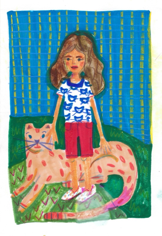Cat Girl with a Wild Cat painting